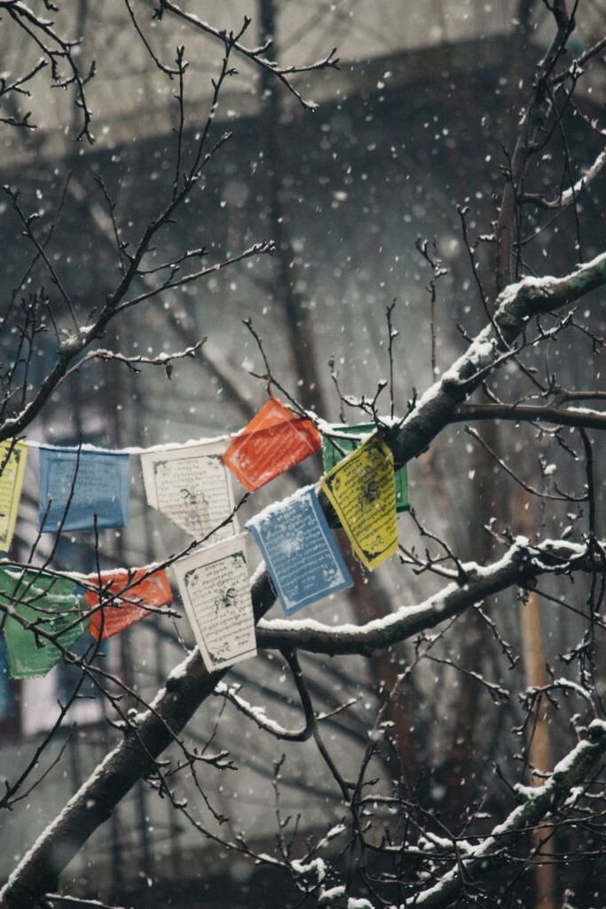 Wij herdenken hen met een Japans ritueel. We schrijven hun naam of een symbool op een lapje en maken een slinger die we buiten ophangen. Door het jaar heen verweert de slinger. In Japan heet dit Wabi Sabi, de schoonheid van vergankelijkheid.